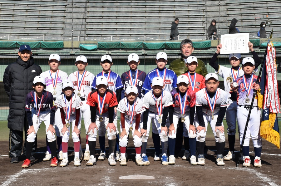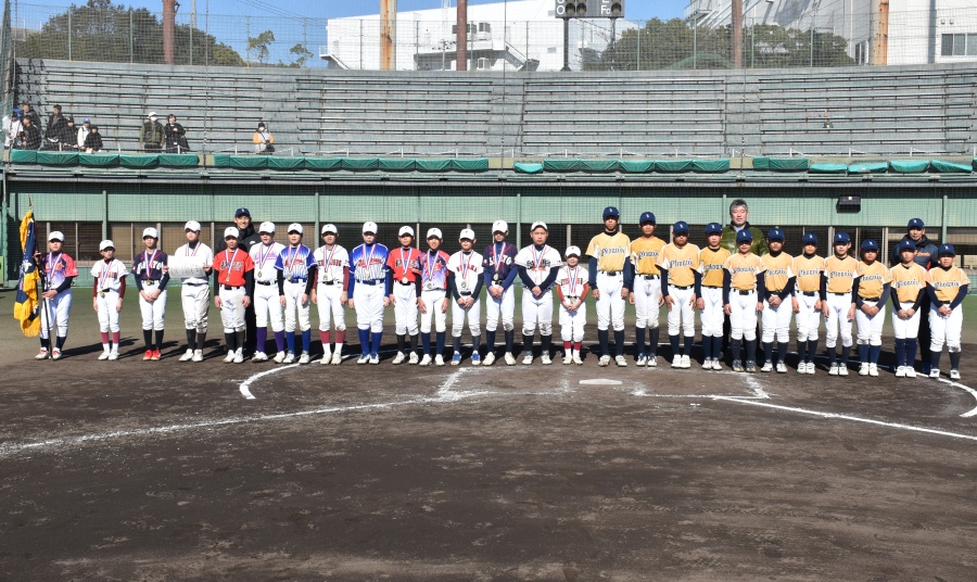 兵庫県内、南と北の最強を決める戦いは、初回から但馬選抜が先制し、中盤に2点を追加。栗山チームは五回裏に一挙3点を返すも、但馬選抜 小谷選手の劇的な勝ち越し本塁打で試合が決まり、但馬選抜が3年ぶりに優勝旗を勝ち取った。/p>